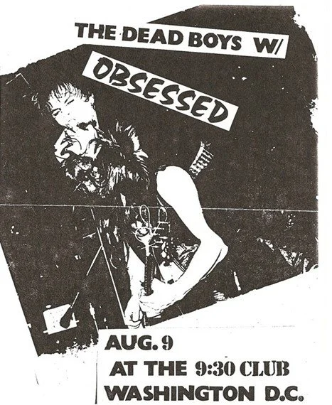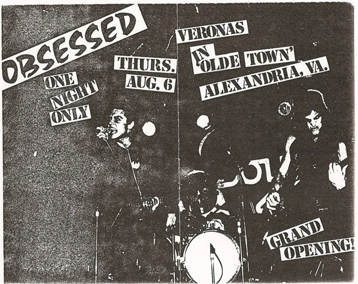 I grew up in the suburbs of D.C., attending the fabled T.C. Williams High School (Remember the Titans) in Alexandria, VA between 1977 and 1981. Sometime around 1978 I discovered punk rock and started attending shows at little clubs all over D.C., using a rather dumb looking homemade fake I.D. at the age of sixteen. Later, when home from college, I regularly attended those same clubs. One such club in Old Towne Alexandria was called The Verona (named after the Italian restaurant downstairs), which was later renamed The Upstairs 704 (the club was located at 704 King Street). On one fateful evening, probably in about 1982, my best buddy and I went to check out a band called The Obsessed. The Obsessed were fronted by none other than Vance Bockis. As we waited for the band to take the stage (well, the floor I guess-- it was a very small club) we knew we were in for a treat. The leather-clad guitar player wandered in with his leather-clad blonde knockout of a girlfriend handcuffed to him. Vance, the vocalist, swaggered in and looked spectacular. He had the leather, the hair, the makeup. He had that dangerous look about him. When the band blasted into their set, which was a combination of punk covers and originals, Vance delivered one of the best performances by anyone that I had ever seen up to that point. He had all the moves down, strangling himself with the mic cord, sticking his head in the bass drum, you name it. If Stiv Bators of The Dead Boys or Iggy Pop had done it, he did it too, but maybe even better. I vowed that night that I would see Vance every chance I got. I saw The Obsessed open for The Dead Boys at the old 9:30 Club, but not too long after that Vance left The Obsessed and they morphed into a doom-metal band with no vocals. That change is something I discovered only after paying my way into a club called The Wax Museum and witnessing the transformation. What a huge disappointment it was when they took the stage and Vance was nowhere to be seen.